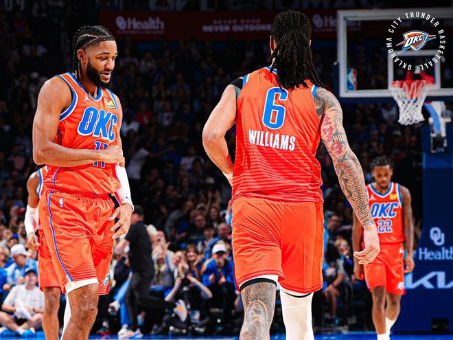 北京时间11月12日,NBA常规赛迎来一场焦点大战,雷霆主场对阵勇士。此前雷霆战绩10胜1负,排名西部第一,勇士战绩6胜5负,排名西部第七。首先,这支雷霆在二当家杰威长时间养伤,且多位重要角色球员因伤病进进出出的情况下,还能打出联盟第一的战绩,确实印证了他们可怕的阵容深度和强大的整体实力。列举几个数据,雷霆本赛季场均控制失分108.8分联盟第一,防守效率105.8联盟第一!净效率值+13.2联盟第一,和他们能在同一水平线的只有掘金,当然,掘金是进攻大队,雷霆这几个赛季,可都是防守最强的球队。