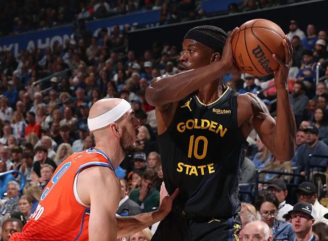 篮板球抢不到,对方出来一个霍姆格伦或杰林,内线还有哈滕,勇士让波杰姆斯基、穆迪去对位,能防么?象征性的伸手已经是球员给出的最大诚意了。这牵扯到第三个问题,给了对手太多的空位三分出手机会。之前输雄鹿和输国王都是这样,内线防不住,外线也漏个干净,对方找到手感后,就拦不住了。第四,也是最容易被忽略的,勇士的三巨头,库里+巴特勒+格林,追不上年轻人,库明加领防又挤不了挡拆,这套勇士首发阵容,防守存在天然短板,可怎么改变呢?拿下库明加?估计只有等梅尔顿回归后能解决这个问题。